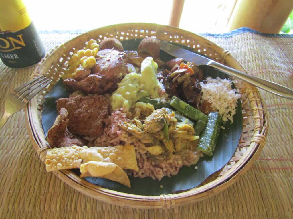 Young jackfruit cooked in coconut milk and aromatic spices has a meaty texture that surprised me. It’s often served with rice and is a must-try for anyone exploring vegetarian options.